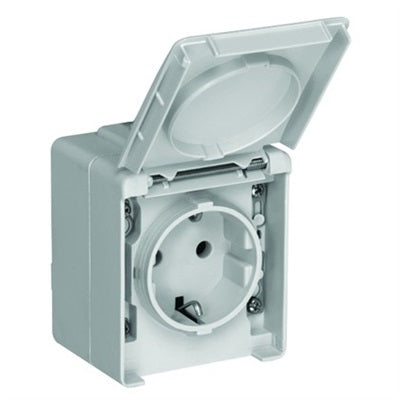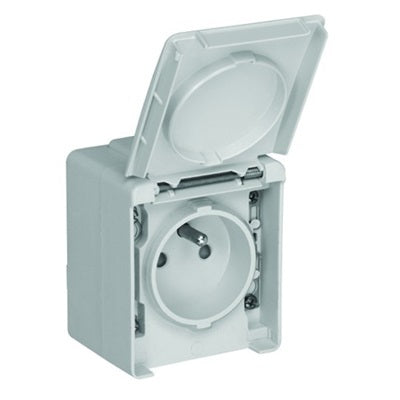 ELKO EPFrancia típusú gyerekzáras dugaszoló aljzat, IP65, 10 A - 250 V - fehér színű