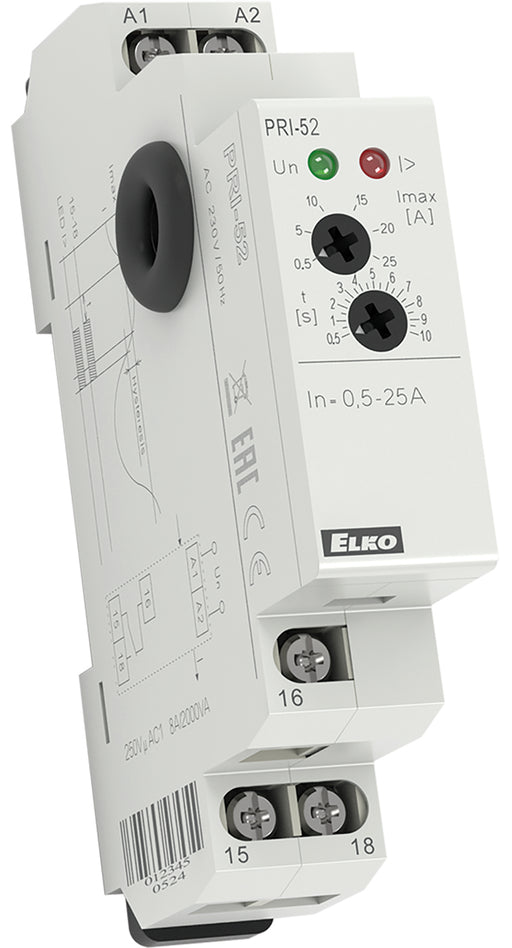 ELKO EPÁramfigyelő relé (áramhatár-kapcsoló) AC 0,5 - 25 A tartományra, - a beépített áramváltón átfűzött vezetéken átfolyó áram mérésével