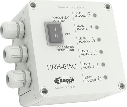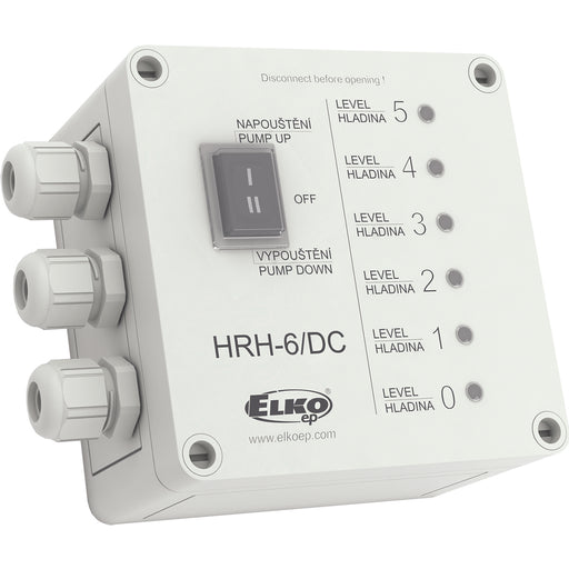 ELKO EPFolyadékszint kapcsoló és kijelző (5 szint) vezetőképes folyadékokhoz IP65 védettségű dobozban. Beállítható min. - max. szintek relés jelzése pl. t...