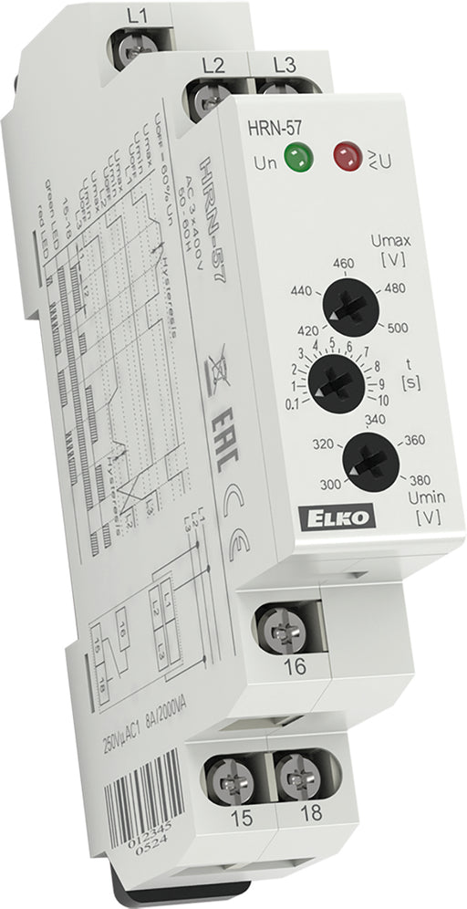 ELKO EPFeszültségfigyelő relé 3-fázisú hálózatokhoz, magas- és alacsony feszültségszintek, és fáziskiesés figyelésére (nullát is figyel)