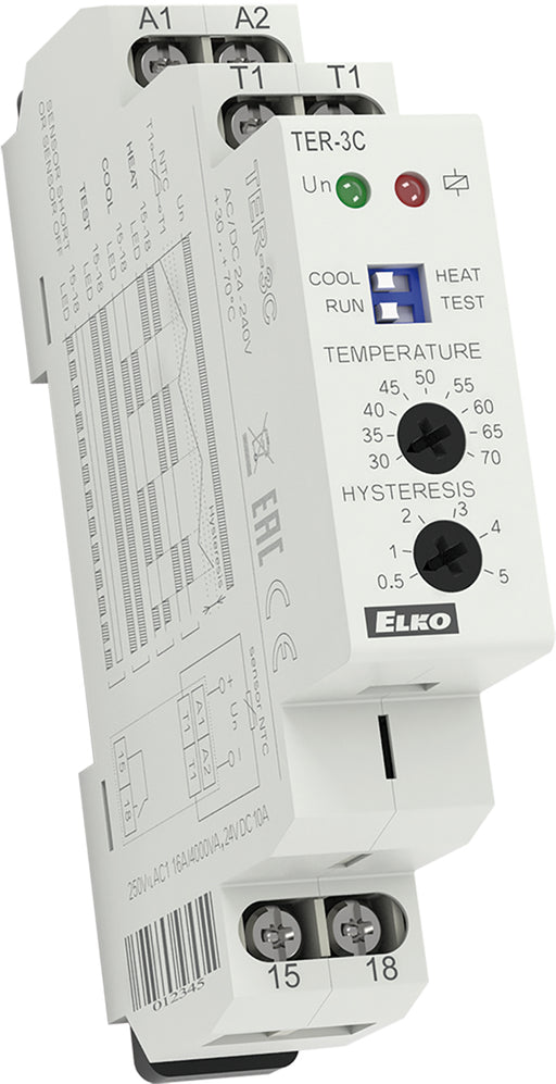 ELKO EPModuláris termosztát külső NTC érzékelővel (TC/TZ nem tartozék), választható fűtés/hűtés funkcióval, +30 .. +70 °C tartományra; 0,5 - 5 °C között á...