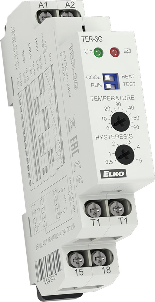 34.192 FtTER-3G - Termosztát, 0.. +60 C, állítható hiszterézis, Pt100!