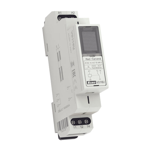 ELKO EPSegédrelé önálló felhasználásra vagy teljesítmény/érintkezőszám bővítéshez; 1x 16 A váltóérintkező, fehér visszajelző, AC/DC 12 - 240 V tápfeszültség