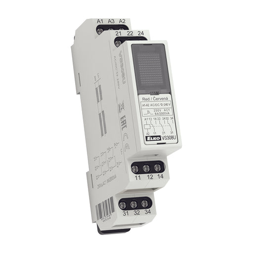 ELKO EPSegédrelé önálló felhasználásra vagy teljesítmény/érintkezőszám bővítéshez; 3x 8 A váltóérintkező, fehér visszajelző, AC/DC 12 - 240 V tápfeszültség