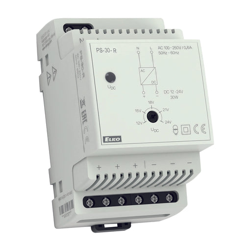 ELKO EPKapcsolóüzemű tápegység, stabilizált 12 - 24 VDC között beállítható kimenettel, 30 W; 3 modul széles