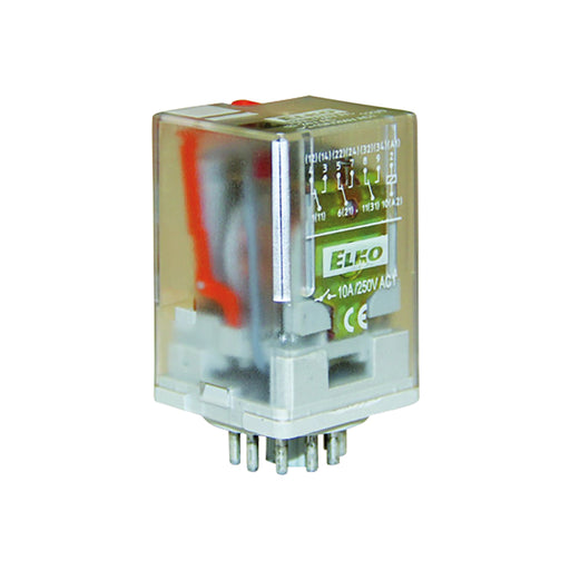 ELKO EPDugaszolható segédrelé, AC 12 V tekercsfeszültséggel, fogyasztók kapcsolására, kapcsoló kontaktusok többszörözésére, 4 váltóérintkezővel