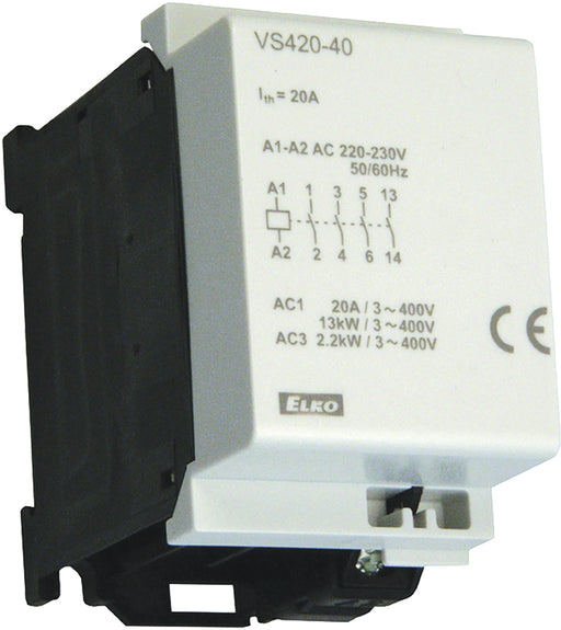 ELKO EPMágneskapcsoló motorok, szivattyúk, világítás, stb. kapcsolásához, 4 záró 20 A-es főérintkezővel, 230 VAC tekercsfeszültséggel