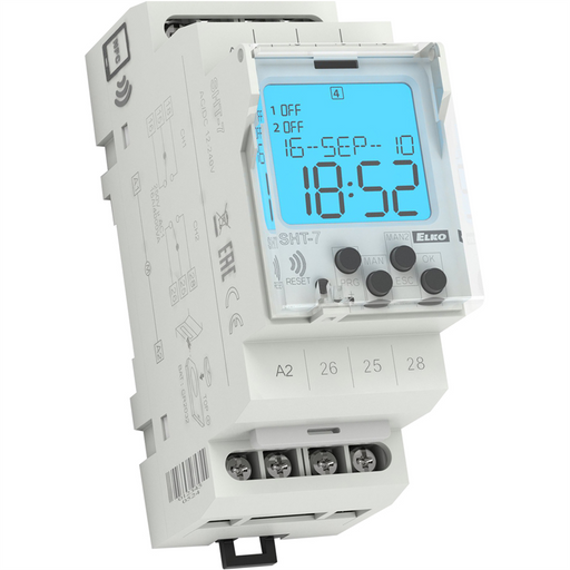 ELKO EPDigitális multifunkciós időrelé világítás-, fűtés-, motorvezérléshez, szivattyúkhoz és más időzítési funkciót igénylő alkalmazásokhoz. LCD kijelző.