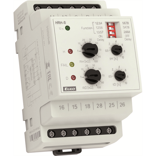 ELKO EPMultifunkciós időrelé 6 funkcióval univerzális felhasználásra; Kimeneti relé: 1x CO, 8 A/AC1, Tápfeszültség: AC 24 - 240 V (AC 50 - 60 Hz) és DC 24 V.