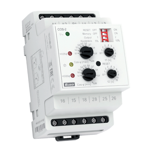 ELKO EPFelügyeleti relé 1- vagy 3- fázisú fogyasztók teljesítménytényező (cosφ) értékének figyelésére. Pl. villamos motorok, elsősorban szivattyúk túlterh...