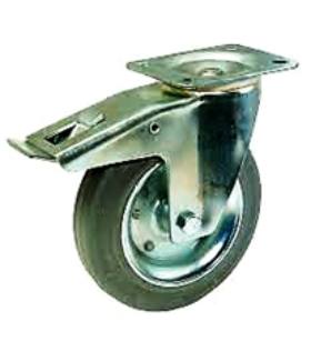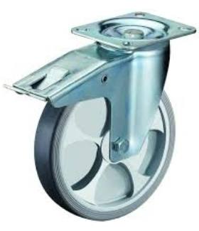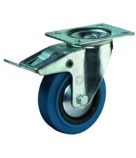 BS100x30x126L420.B20.101 Talpas, forgó villás, fékes szállítókerék. Cinkromátozott acéllemez villa. Keréktest és futófelület: termoplasztikus keveré...
