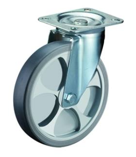 BS125x50x178N100.B90.129(131. oldal) Talpas, fixvillás, nagy teherbírású kerék. Cinkromátozott acéllemez villa. Keréktest: alumínium, Futófelület: Ön...