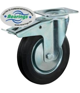 BS200x50x20205 KG, TALPAS FORGÓVILLÁS, TOTÁLFÉK, FEKETE GUMI FUTÓFELÜLET, ACÉL FENI, TŰGÖRGŐS KOSÁR(91.O.)
