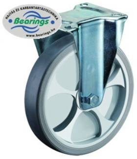 BS125x50x178N100.B90.129(131. oldal) Talpas, fixvillás, nagy teherbírású kerék. Cinkromátozott acéllemez villa. Keréktest: alumínium, Futófelület: Ön...