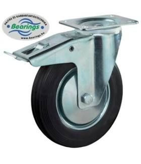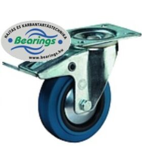 BSLS420.B61.125 Talpas, forgó villás, fékes kerék. Cinkromátozott acéllemez villa. A villa forgórészében kettő darab, zárt golyósor biztosítja az irá...