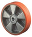 Poliuretán kerék, keréktárcsa: alumínium. Futófelület: Öntött poliuetán, barna 95+/-3 ShoreA, csapágyazás: golyóscsapágy