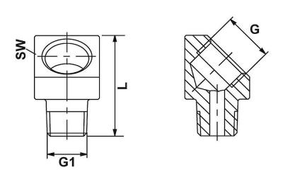 Kezdőoldal Ipar Kenéstechnika - alkatrészek Adapterek, kiemelők, menetátalakítók Adapter 45° M 8x1 - M 8 x 1 tap